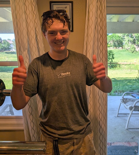 Fletcher got a full-time summer job building custom decks this summer. It is very hard work moving concrete, digging holes through clay for footings, and staining.