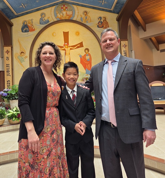 Tate celebrated his Confirmation and First Communion. Tate's confirmation saint is Saint John of God. He is the patron saint of booksellers, printers, heart patients, hospitals, nurses, the sick, and firefighters.